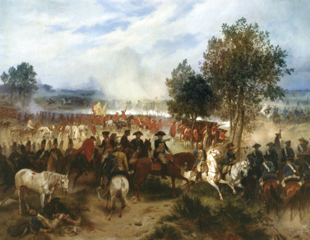 25. August 1758 - Sieben-Jähriger Krieg: "Schlacht von Zorndorf - Attacke der preussischen Kavallerie" Gemälde um 1864; versteigert im April 1997 im ... zum Schauplatz