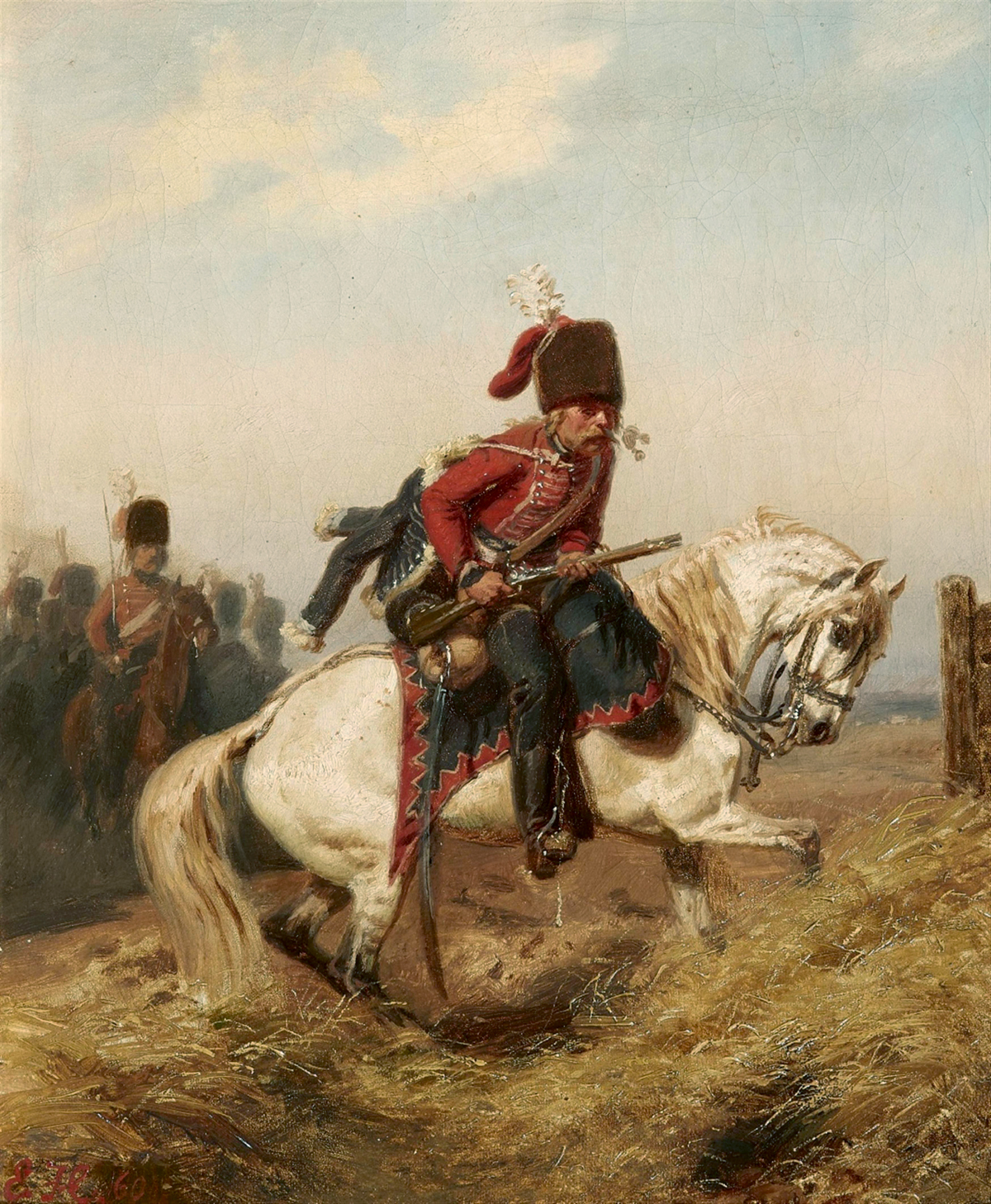 "Vedette" - Vorposten der Zieten’schen Husaren. Gemälde um 1860; versteigert im März 2019 vom ... zur Geschichte