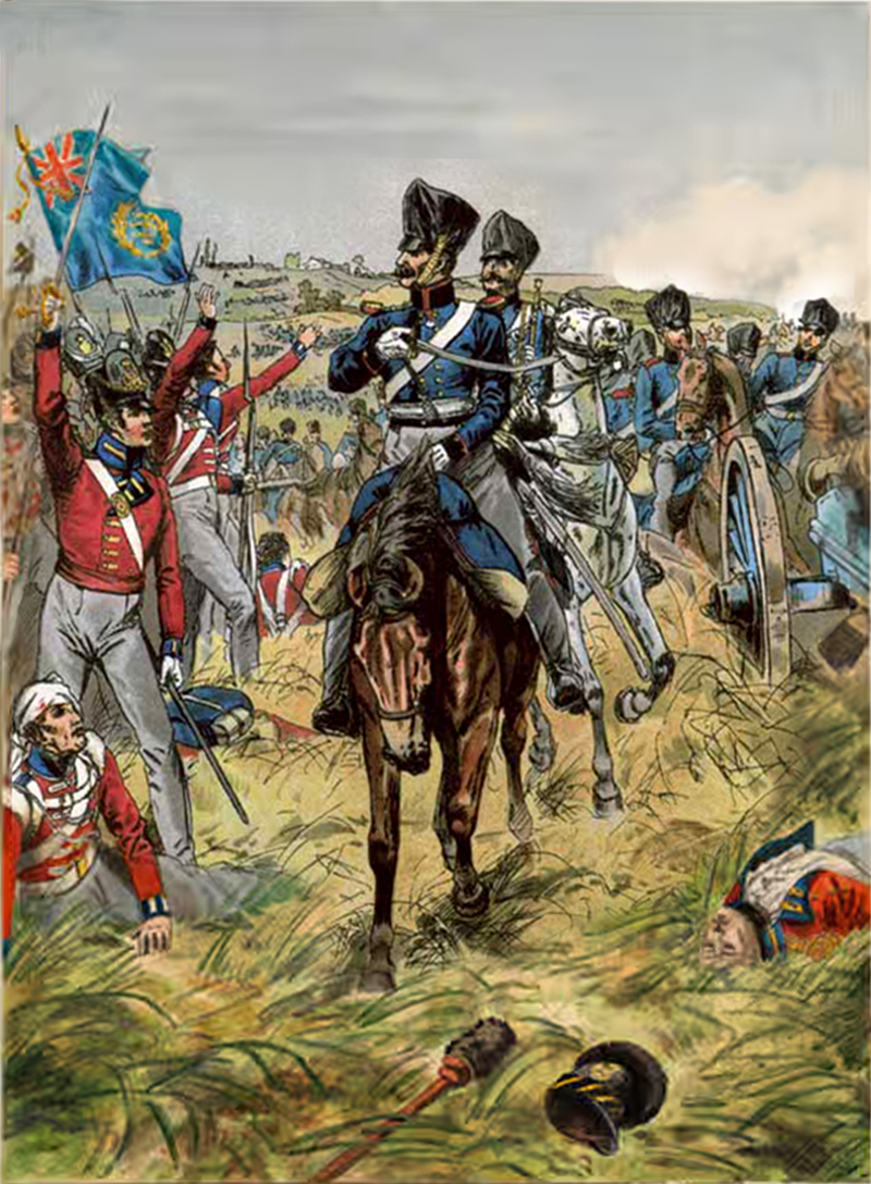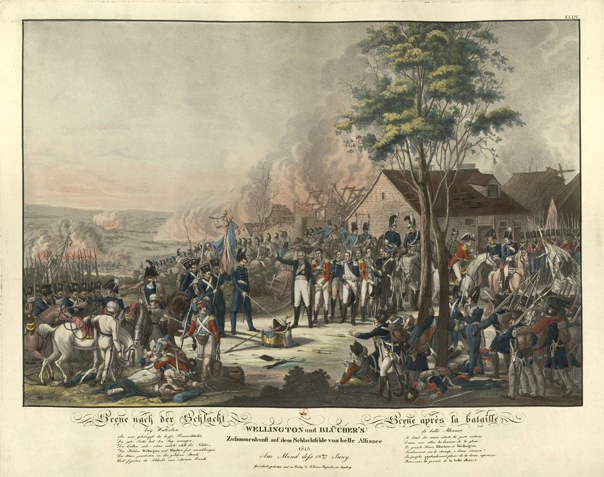 Wellingtons Sieg bei Waterloo – in der preussisch-deutschen Militär-Geschichte als "Sieg von Belle-Alliance" -, in der französischen Geschichts-Schreibung anfänglich als "Schlacht von Mont-Saint-Jean" bezeichnet – war unter außerordentlich hohen Verlusten teuer erkämpft. Der preussische Beitrag an der Schlacht von Waterloo bestand in dem einfachen Fakt, dass Blücher Wellingtons Niederlage abgewendet hat. Die oftmals aufgeworfene Frage, ob die nach und nach eintreffenden preussischen Korps hingegen in der Lage gewesen wären, Napoleons abgekämpftes Heer im Fall eines Rückzugs der britisch-niederländisch-deutschen Armee allein zu besiegen, stellt sich nicht. Gegen 18:00 Uhr verfügte Wellington noch über rund 68.000 Mann - Napoleon hatte zu diesem Zeit-Punkt noch etwa 45.000 Mann, von denen bereits ein Drittel im Kampf gegen die Preussen bei Plancenoit gebunden waren.