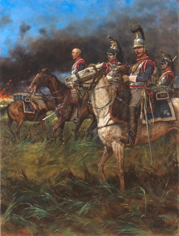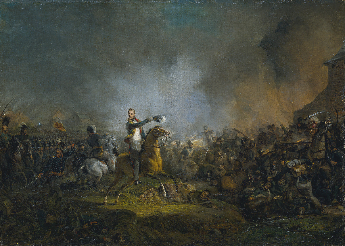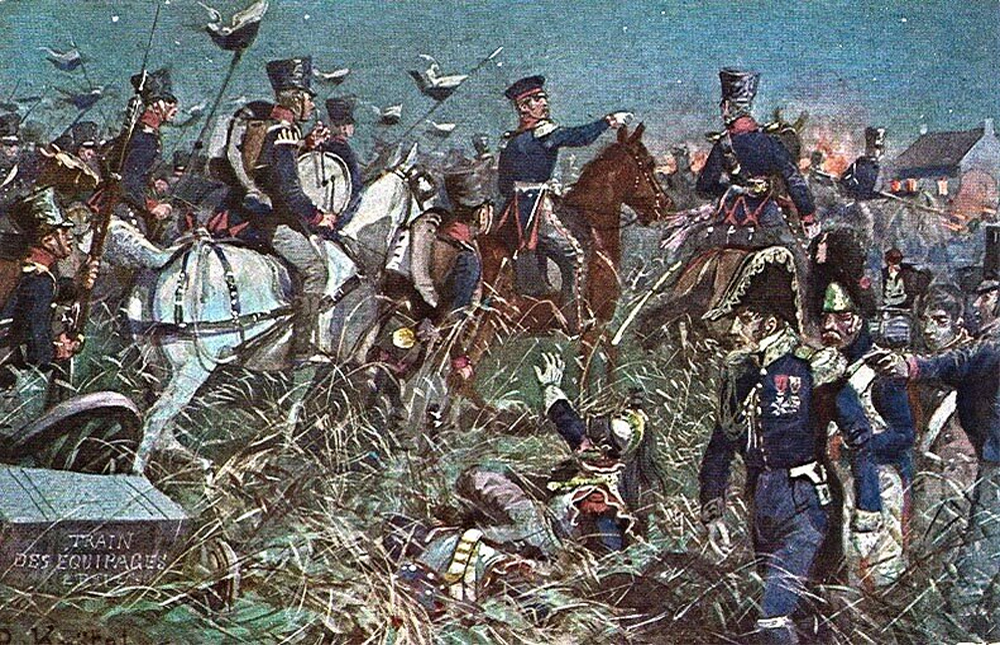 Kurz vor Einbruch der Dunkelheit sind sämtliche Straßen in Richtung Süden von den fliehenden Soldaten der sich in Auflösung befindlichen französischen Armee verstopft, die die Karosse des Kaisers behindern. Um seiner Gefangennahme durch die nahe preussische Armee zu verhindern, ist Napoleon gezwungen, wieder auf sein Pferd zu steigen.