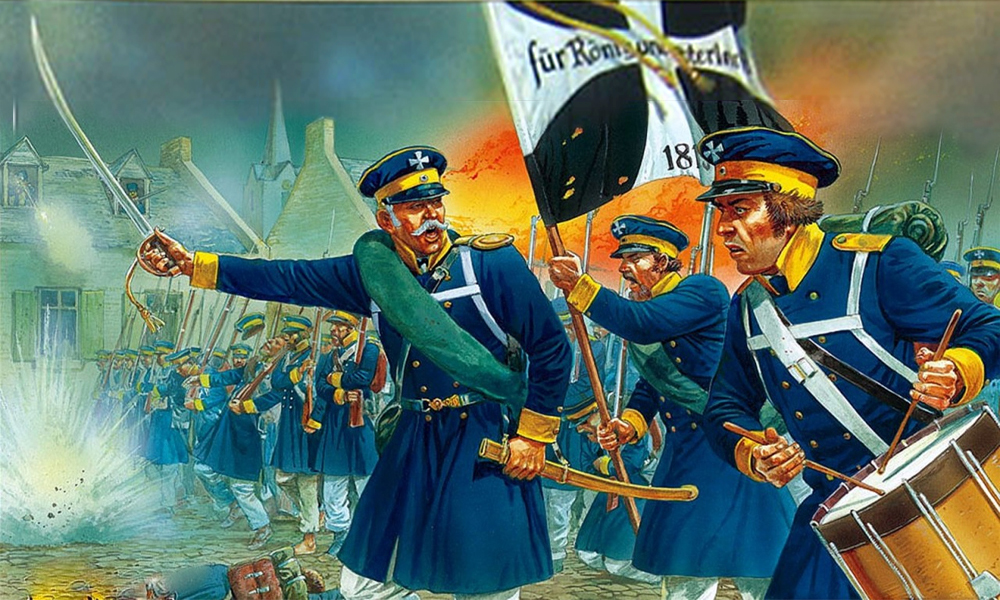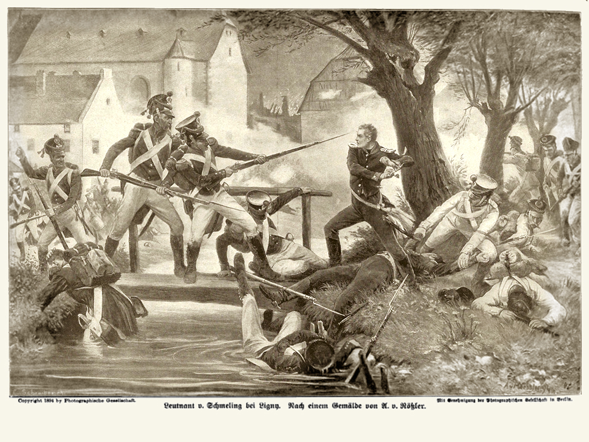 Napoleon sah in der insgesamt rund 120.000 Mann starken preussischen Armee unter Feld-Marschall Blücher den schlag-kräftigsten und damit gefährlichsten Gegner: Von Namur aus hatten die Preussen am 14. Juni in drei Kolonnen die Maas überschritten und rückten im Eil-Marsch in Richtung Brüssel vor, wo die Vereinigung mit dem etwa 100.000 Mann starken Heer der britisch-deutsch-niederländischen Allianz unter Feld-Marschall Wellington geplant war. Napoleon blieb somit nur die Option, die Alliierten schnell und nacheinander zu schlagen. Erstes Ziel waren somit die drei Korps unter den Generalen Zieten, Pirch und Thielemann mit rund 83.000 Mann, die die preussische Haupt-Armee unter Blücher bildeten, und die etwa 37.000 Mann des IV. preussischen Korps unter General Bülow, das als Reserve nördlich der Haupt-Armee in Richtung Wavre vorrückte.