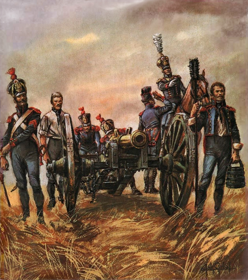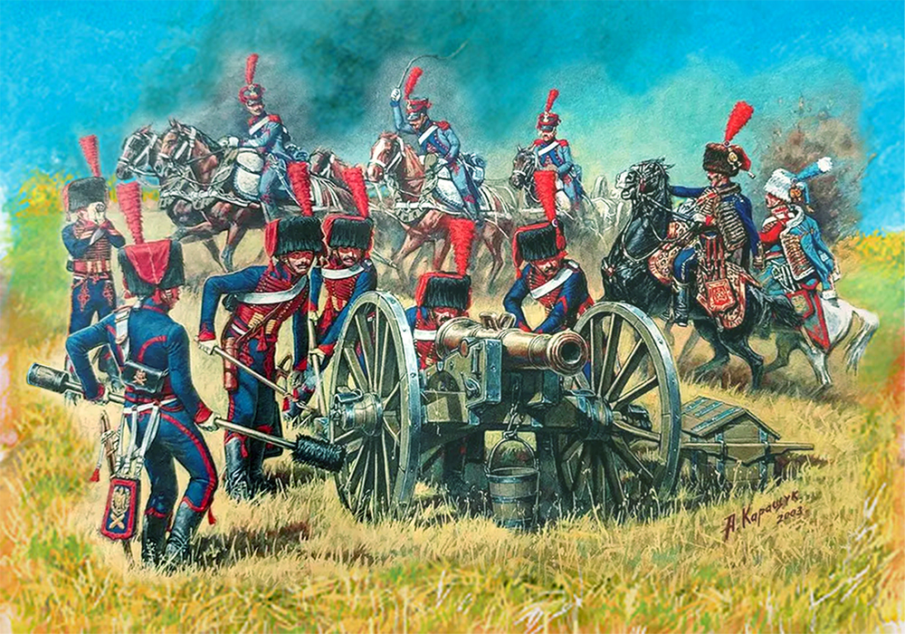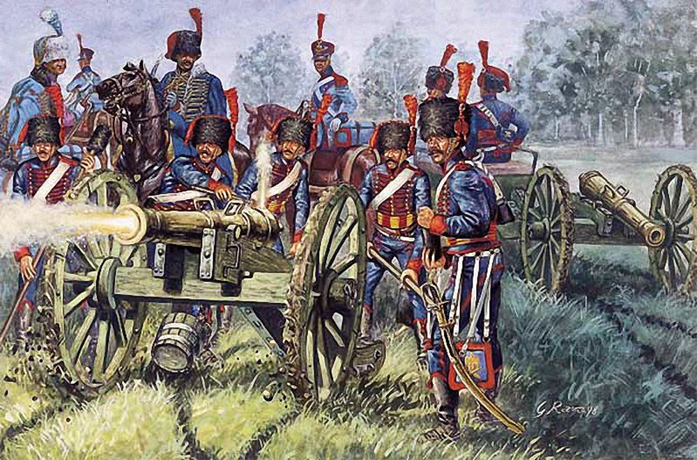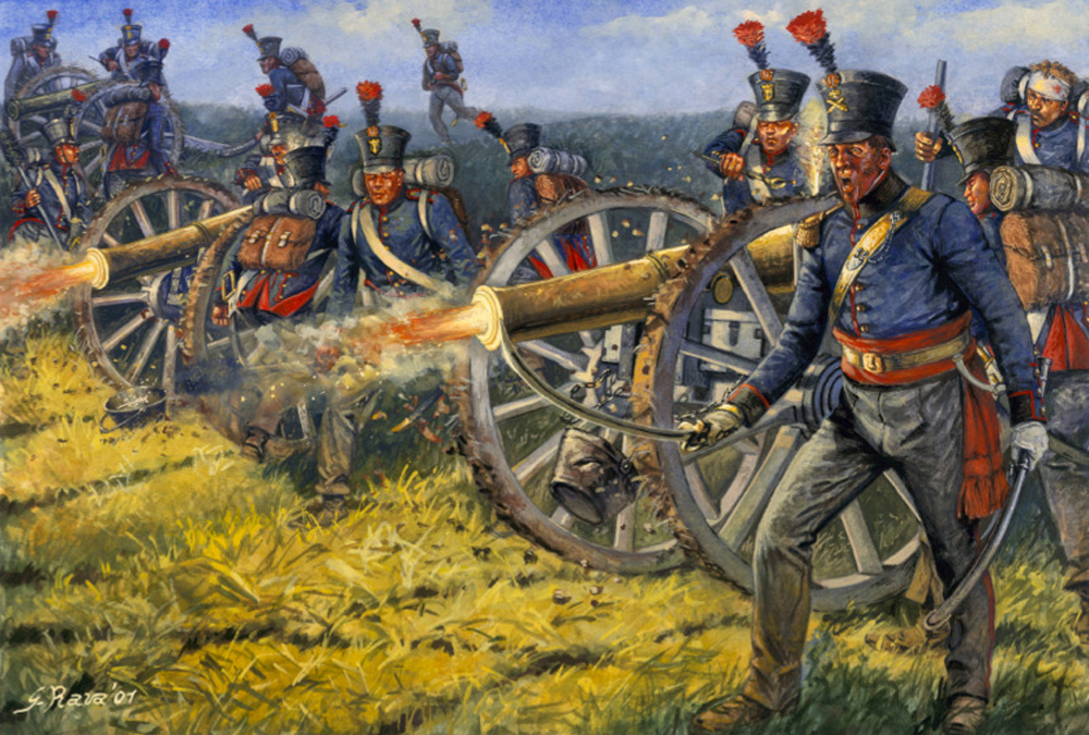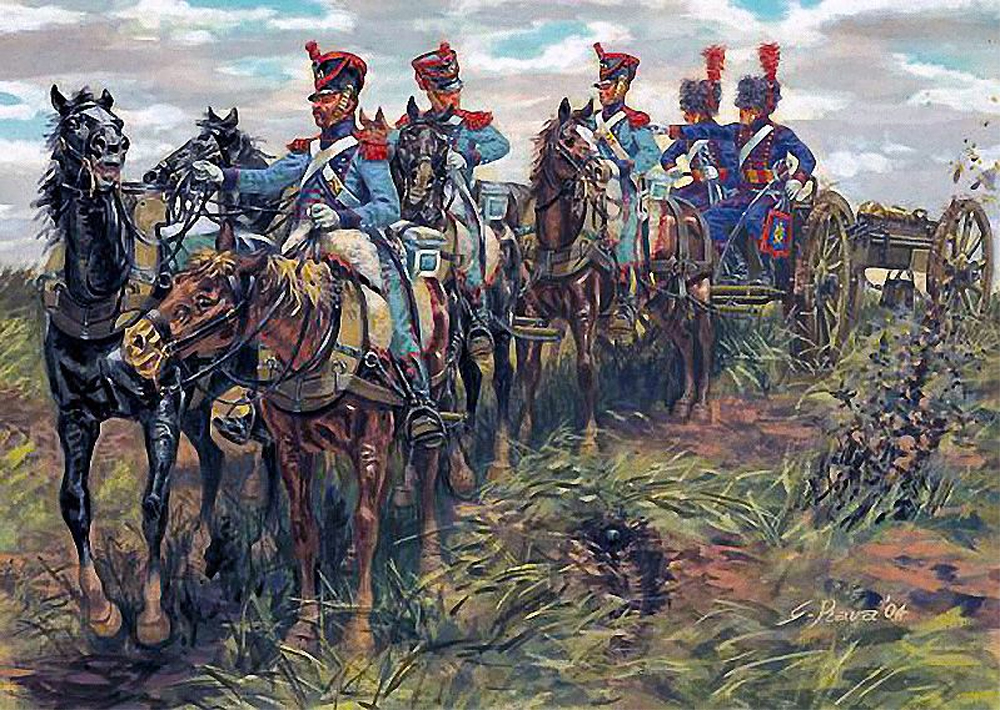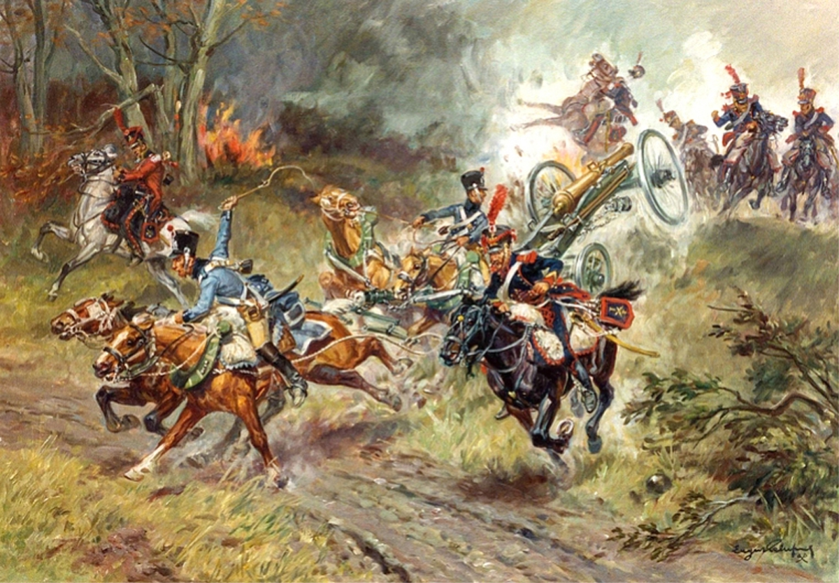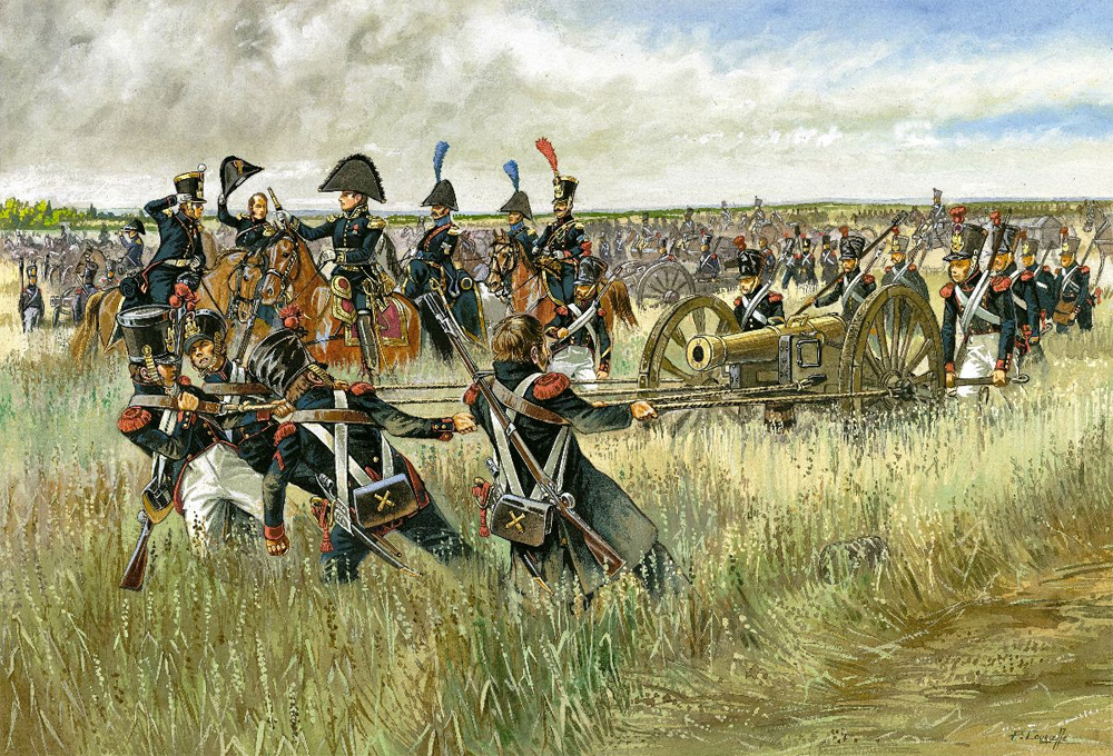 Abtransport der französischen Geschütze vom Schlacht-Feld.