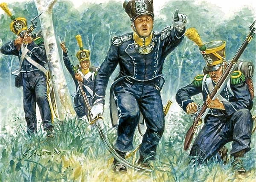 Illustration von Peter Dennis für »Warlord Games - Black Powder«-Modell-Figuren.