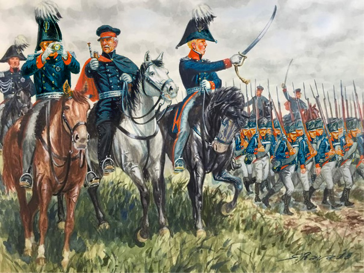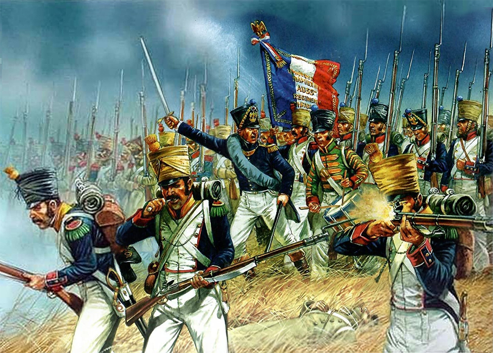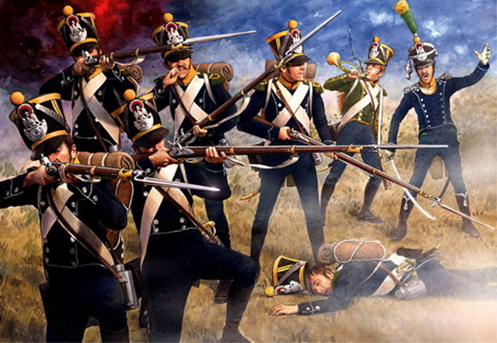 Ende Mai 1815: Bis auf die Preussen, die die Frankreich im Juli 1814 auferlegten Kontributionen in den von der preussischen Armee überwachten und verwalteten Gebieten mit rücksichtsloser Härte eintrieben, hatten die anderen großen alliierten Besatzungs-Mächte – Britannien, Russland und Österreich – im Frühjahr 1815 bereits erhebliche Teile ihrer Armeen abgezogen und teilweise aufgelöst. Und obwohl die Gesandten auf dem Wiener Kongress relativ schnell zur Einigung gekommen waren, gegen den von allen europäischen Höfen gefürchteten Usurpator unverzüglich eine neue Interventions-Armee von je 150.000 Mann pro Partei auf- und zusammenzustellen, deren Verbände zum 1. Juli in Frankreich einrücken sollten, würden die Kontingente Österreichs und Russlands aufgrund der zurückzulegenden Entfernungen frühestens im Spät-Sommer oder gar erst im Herbst eintreffen. Somit standen Britannien und Preussen samt ihren jeweiligen Verbündeten weitestgehend allein vor der Aufgabe, den zu erwartenden Präventiv-Schlag Napoleons abfangen zu müssen.