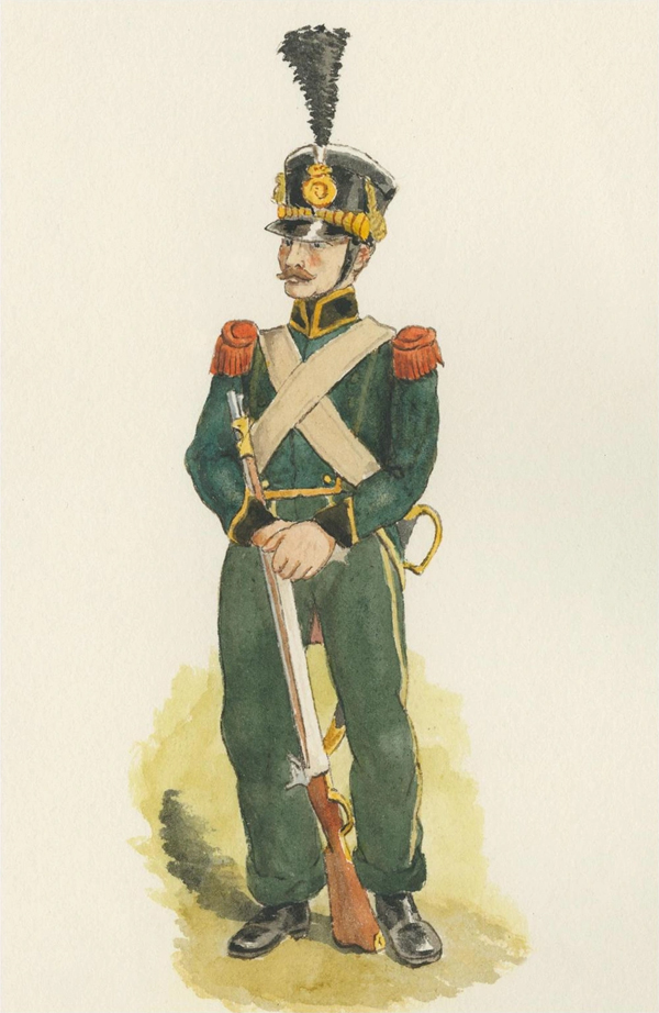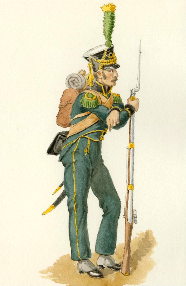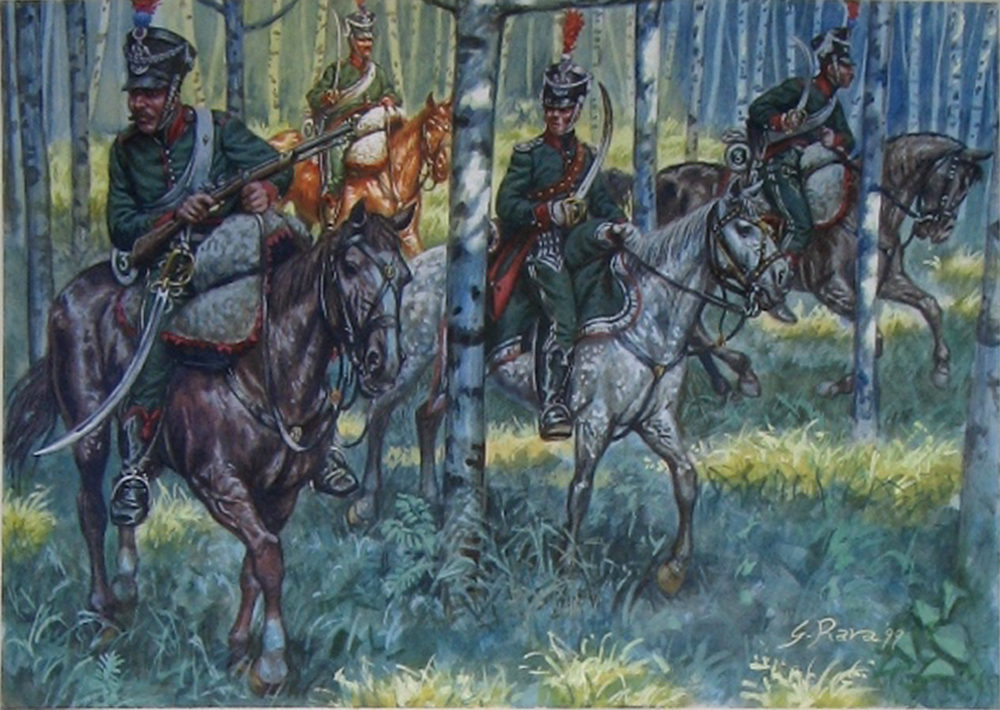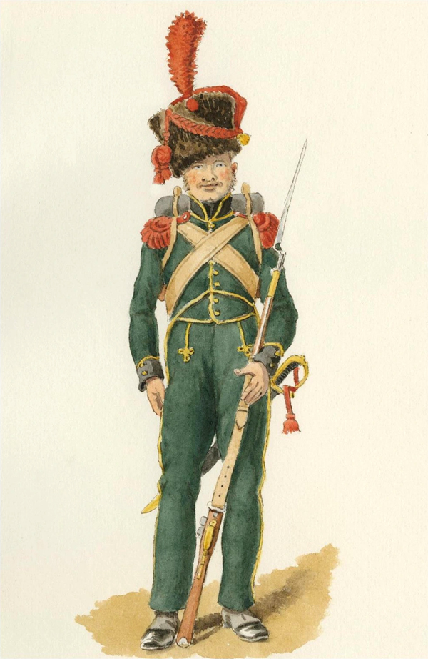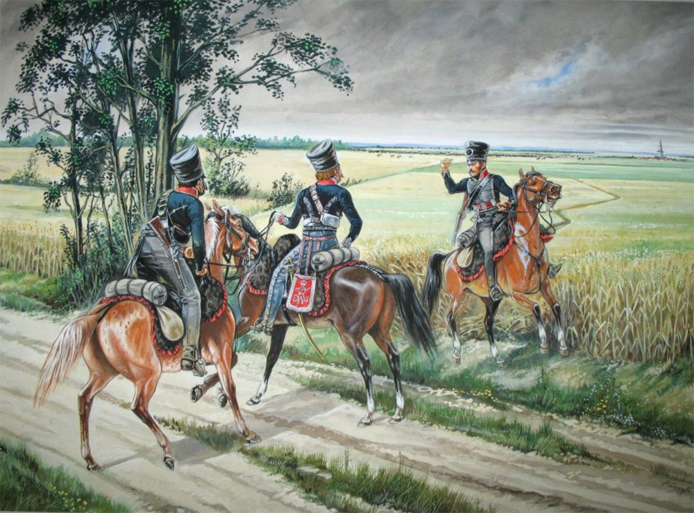 Colorierter Stich nach einer Vorlage Joseph Louis Hippolyte Bellangé, lt. Auktions-Haus »Osenat« im Privat-Besitz.