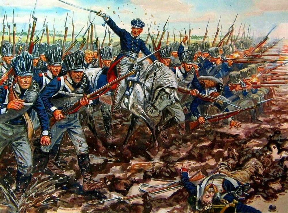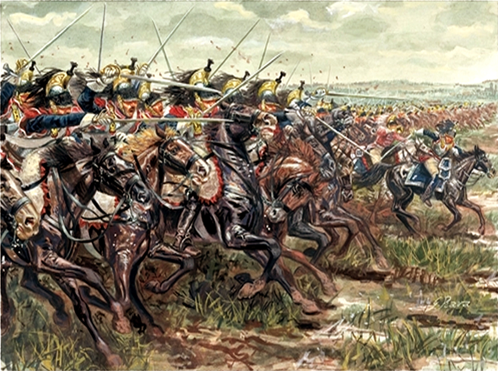 Diese, von dem für seine militär-wissenschaftlichen Werke über Strategie, Taktik und Philosophie bekannten preussischen General und Reformer Carl von Clausewitz in seiner Studie über den Feld-Zug von 1815 formulierte These mag unter Berücksichtigung einer ganzen Reihe von Aspekten fragwürdig sein, rückt aber den oft vernachlässigten Faktor "Zufall" in die Betrachtung und eröffnet die Analyse über Ursachen und die sich hieraus ergebenden Folgen und Möglichkeiten: Angefangen vom Dauer-Regen, der nicht nur das Schwarz-Pulver und damit die Feuer-Waffen unbrauchbar machte sondern auch den Lehm-Boden aufgeweicht hatte und damit Angriffe der Infanterie bzw. Attacken der Kavallerie beeinträchtigte; über die miserable Versorgungs- und Verpflegungs-Lage der französischen Armee; bis hin zur äußerst vorteilhaften Defensiv-Position Wellingtons, dessen Stellung durch die befestigten Höfe von Hougoumont und Papelotte an den Flanken relativ gut gesichert war und dessen Truppen hinter der Höhe von La Haye Sainte vor der Wirkung der französischen Artillerie weitest-gehend gedeckt standen, blieb Napoleon auf dem Feld von Waterloo einzig seine (wenn auch nur leichte) zahlenmäßige Überlegenheit, doch waren seine Truppen abgekämpft und von den Eil-Märschen erschöpft. Beschreibungen nach war auch Napoleon selbst alles andere als in guter Verfassung: Die dauernde Übermüdung hatte ihn reizbar und unkonzentriert gemacht; sein Gesundheits-Zustand – insbesondere sein Magen-Leiden – beeinträchtigte seine allgemeine Konstitution; und entgegen seiner früheren Aura der Sieges-Zuversicht soll er auf seine Stabs-Offiziere einen nervösen und unsicheren Eindruck gemacht haben und während der Schlacht mehr mit dem Verbleib seines Marschalls Grouchy und den Bewegungen der sich langsam aber stetig nähernden preussischen Truppen als mit dem Geschehen vor Ort beschäftigt gewesen sein. Selbst bei den von Ney frontal vorgetragenen Massen-Angriffen, die taktisch einfach nur dilettantisch begonnen -; in der operativen Ausführung mörderisch forciert worden waren und sämtlich scheiterten, sah Napoleon offenbar keinen Grund zum Eingreifen…