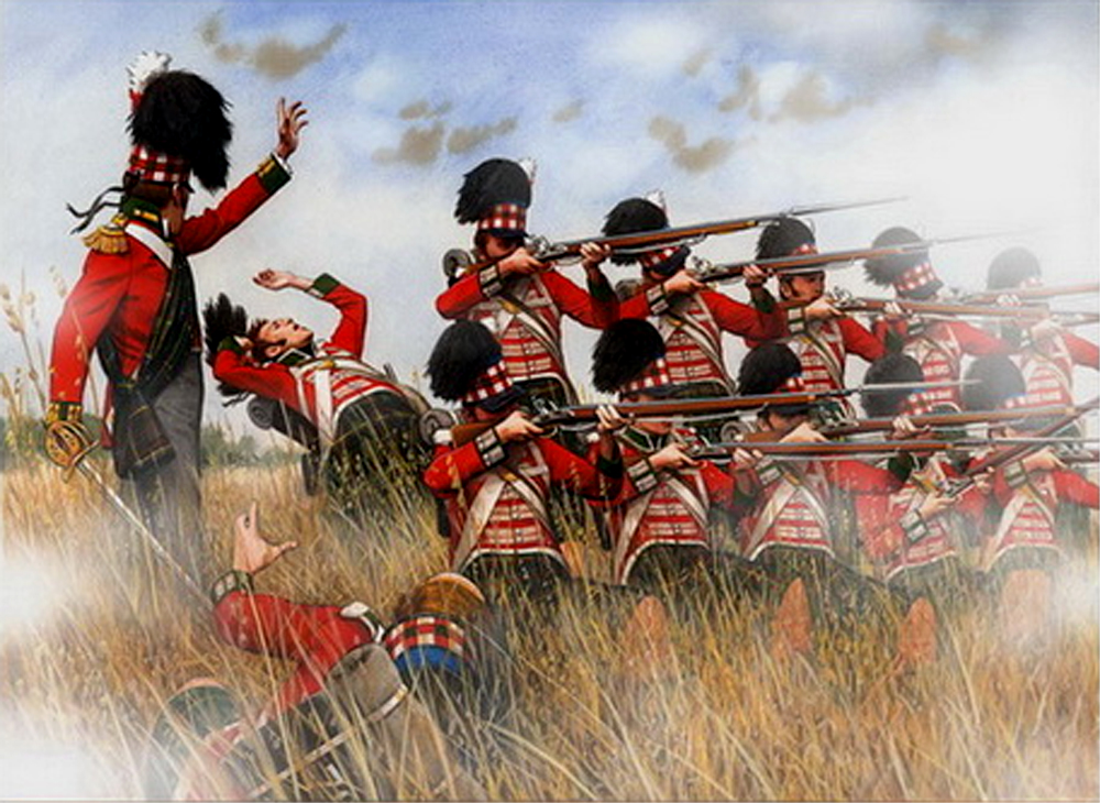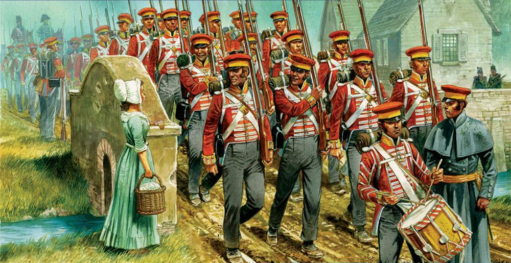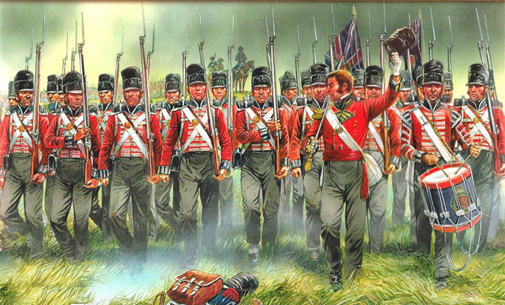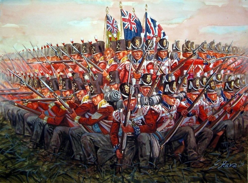 Auch das britische Empire hatte mit der Nachricht von Napoleons Rückkehr unverzüglich begonnen, sämtliche noch gegebenen Einheiten wieder auf Soll-Stärke zu bringen, neue zu errichten und zu mobilisieren. Neben den Braunschweigern des Schwarzen Herzogs und den Hannoveranern der noch bestehenden "Kings German Legion" gehörten nun auch die vormals mit Frankreich verbündeten und mit gehörigem Misstrauen bedachten Nassauer, Niederländer und Belgier zu den britischen Alliierten. Ende Mai verfügt Wellington über eine Streit-Macht von insgesamt etwa 115.000 Mann, davon rund 100.000 Mann Feld-Truppen, die von 35.000 Briten, 41.000 Deutschen (Hannoveranern, Braunschweigern und Nassauern) sowie über 24.000 Niederländern und Belgiern gestellt -, in ihrem Kampf-Wert jedoch als mehr oder weniger zweit-klassig eingestuft wurden. Viele der kampf-erfahrenen Veteranen, die Wellingtons Halbinsel-Feldzug begleitet hatten, waren inzwischen nach Übersee verschifft worden und kämpften in den währenden britisch-amerikanischen Auseinandersetzungen oder gegen Aufständische in Indien. Die nahe der französischen Grenze in Belgien stehenden Überwachungs-Truppen wurden überwiegend von Reservisten und Rekruten gestellt. Trotzdem äußert sich Wellington im Ergebnis einer großen Parade samt anschließender Inspektion – abgehalten am 29. Mai 1815 in Grammont nahe Brüssel – in der Art zufrieden über die Qualität seiner Soldaten, dass er seiner Armee zwei Wochen der Ruhe und Erholung genehmigte.
