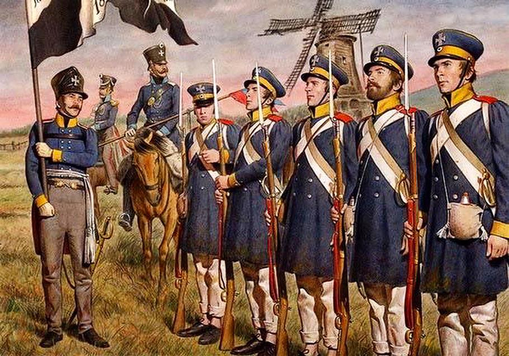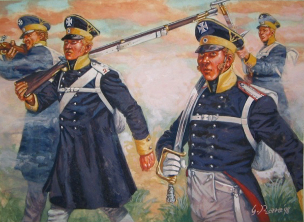 Gemäß den Verhandlungen des Wiener Kongresses hatte Preussen inzwischen die Hoheit über viele der vormaligen Rheinbund-Staaten übernommen. Damit waren zwar auch die jeweiligen Landes-Heere in der preussischen Armee aufgegangen, doch empfanden die meisten Rhein-Länder die neue Landes-Hoheit als neue Besatzungs-Macht und galten dementsprechend als unzuverlässig. Blücher setzte die rheinländischen Truppen bevorzugt als Besatzungen der französischen Festungen ein. Seine rund 155.000 Mann starke Armee unterteilte sich in etwa 35.000 Mann Garnisons-Truppen und vier Korps Feld-Truppen zu jeweils rund 30.000 Mann.