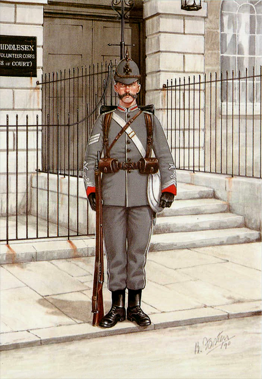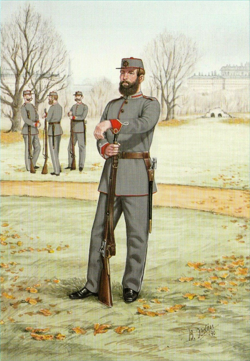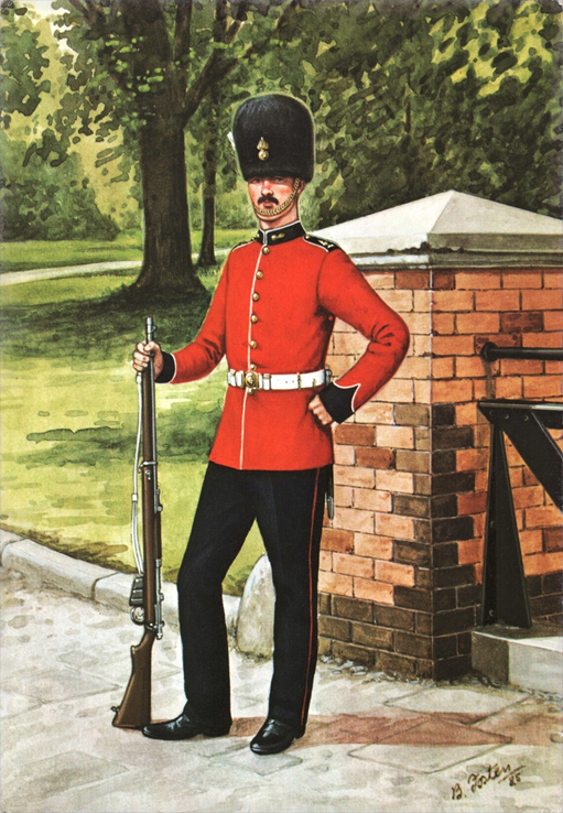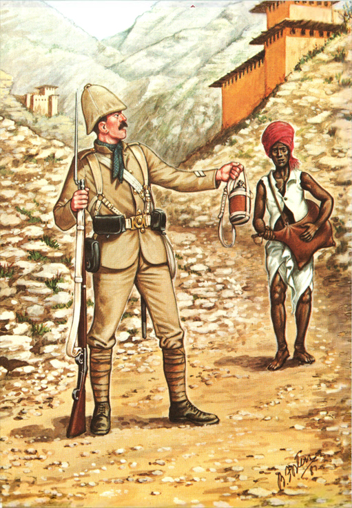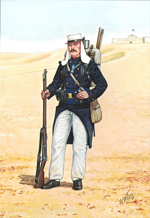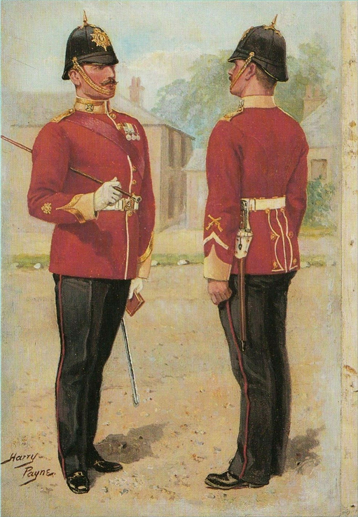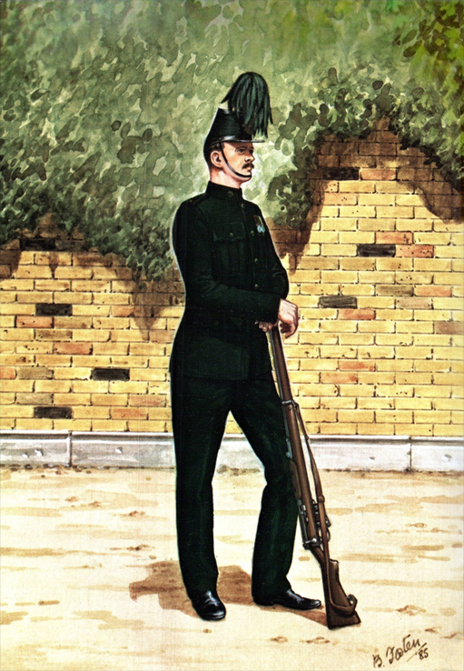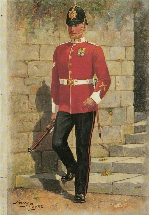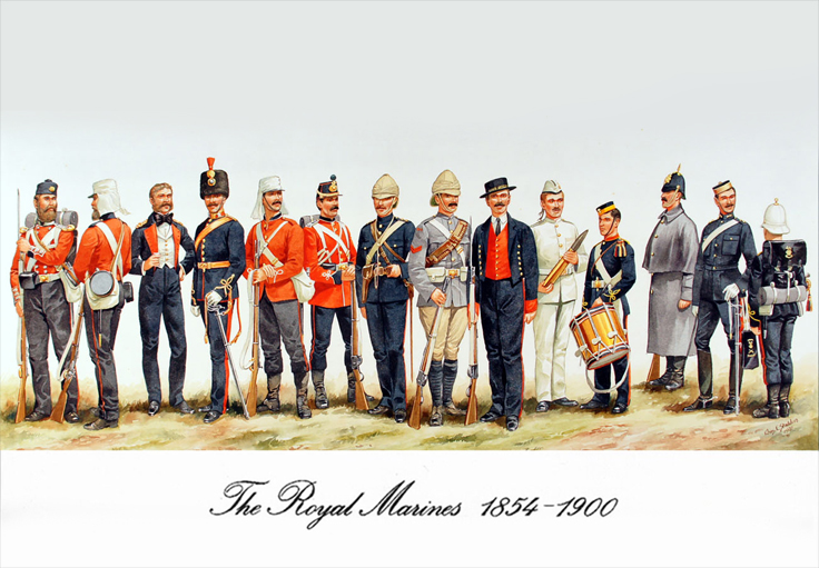 Light Infantry and Artillery 1854-1900: Private, RM (Crimea) 1854; Private, RM (China)1859; Officer, RM Artillery (Mess Dress) 1860; Officer, RM Artillery (Full Dress) 1870; Private, RM Light Infantry (Ashanti War) 1873; Private, RM Light Infantry (Marching Order) 1876; Officer, RM Light Infantry (Service Dress Egypt) 1882; Cpl, RM (Camel Regt Sudan) 1885; Private, RM (Boats Crew) 1890; Gunner, RM Artillery (Drill Order) 1894; Drummer, RM Artillery (Undress) 1896; Private, RM Light Infantry (Greatcoat) 1895; Adjutant, RM Artillery (Undress) 1894; Bugler, RM Artillery (Marching Order) 1900.