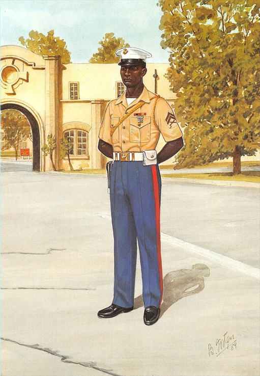 Battle Dress, the signs that help distinguish friend from foe are as old as conflict; the earliest distinctions for Marines were the colour of their coats and the flags they carried.