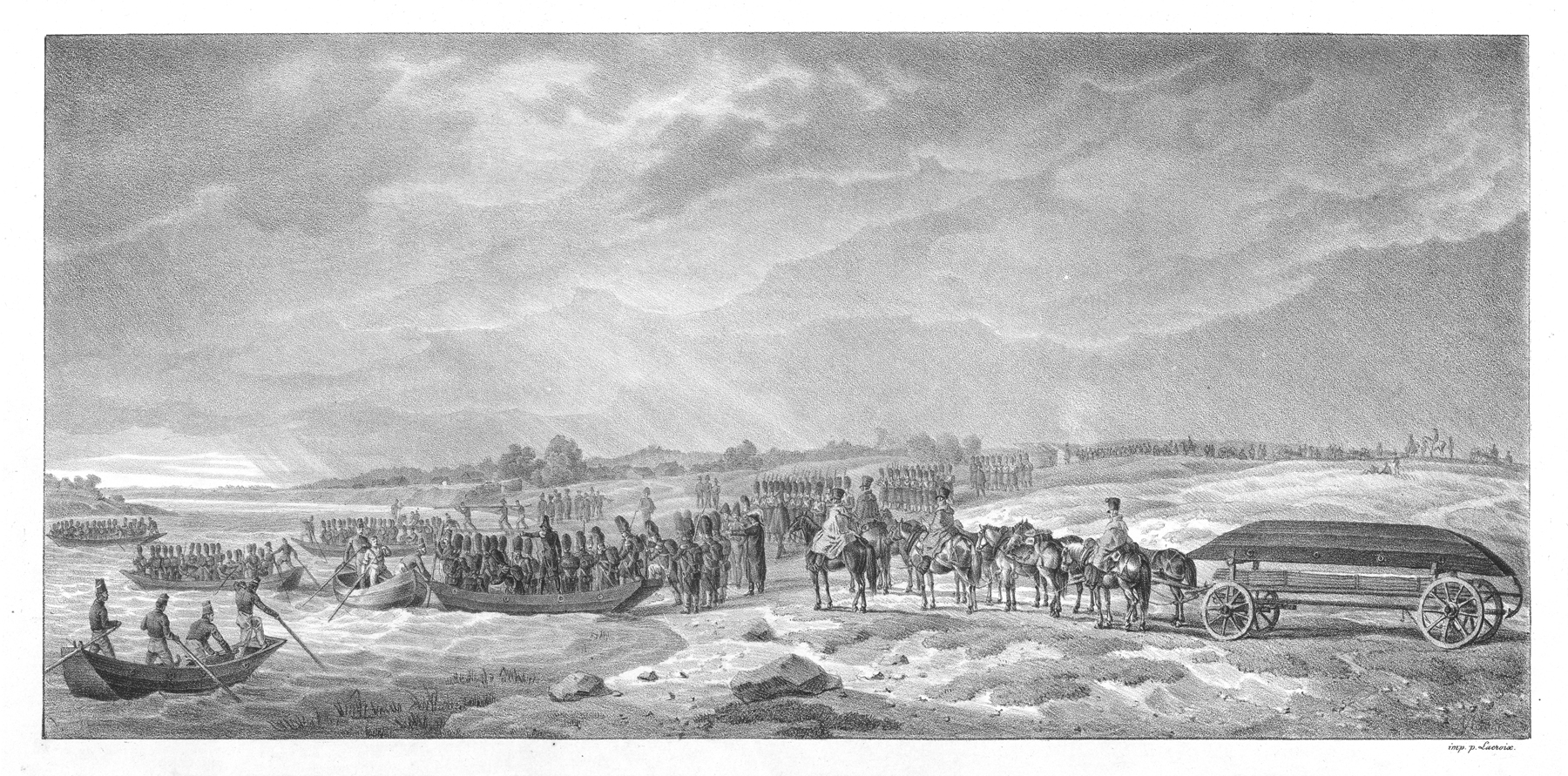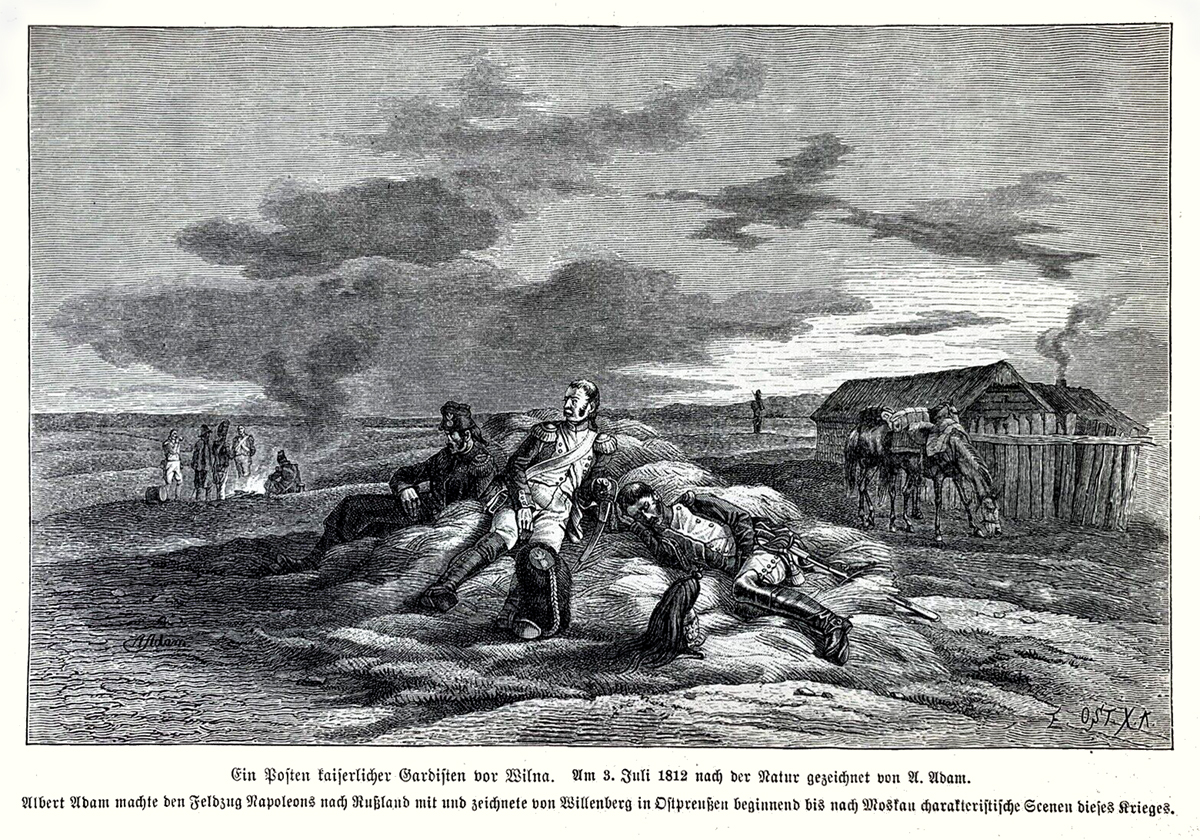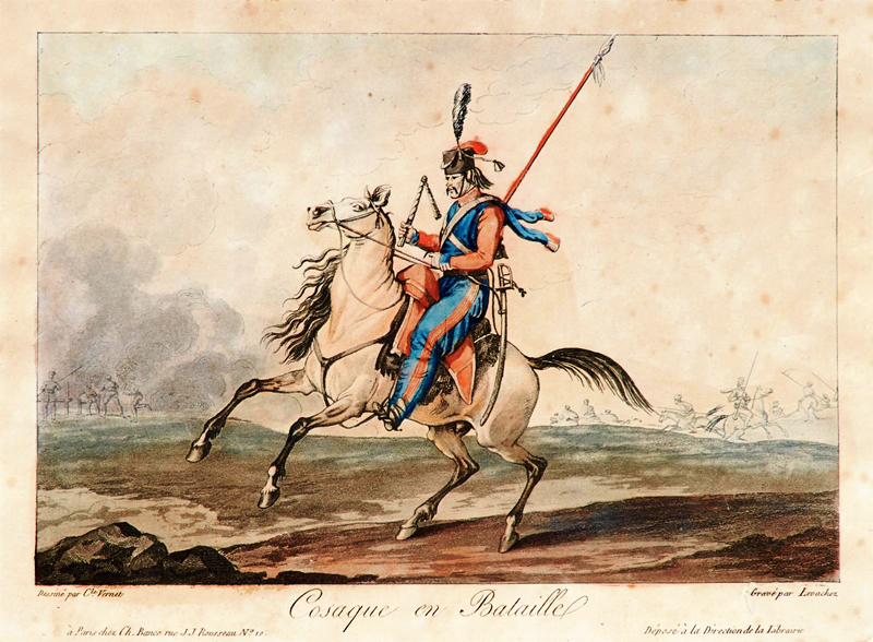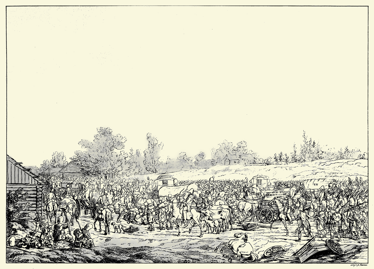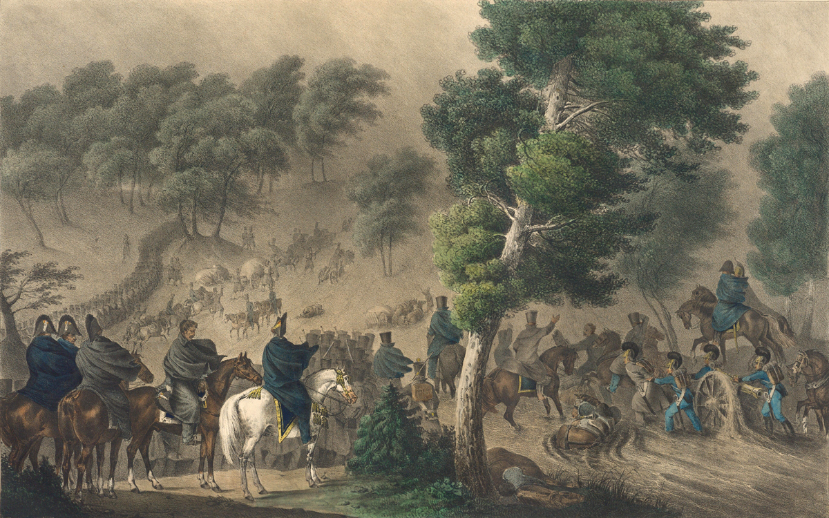 Kupfer-Stich von J.M. Darmet aus dem Atlas-Band "Histoire militaire de la campagne de Russie en 1812" von D.P. Boutourlin in der Sammlung der »Allrussischen staatlichen Bibliothek für ausländische Literatur. M.I. Rudomino« (Moskau, RUS).
