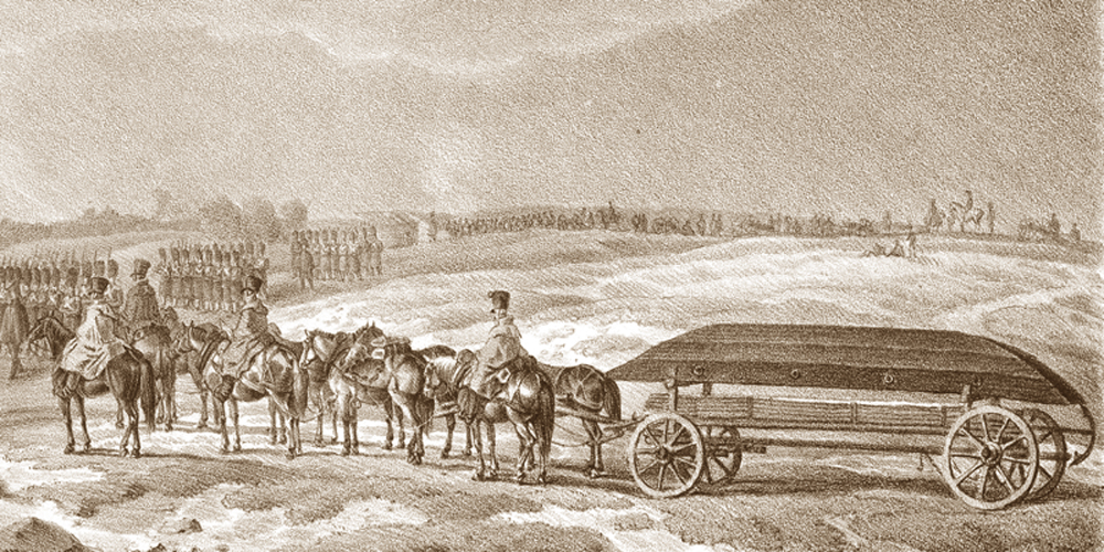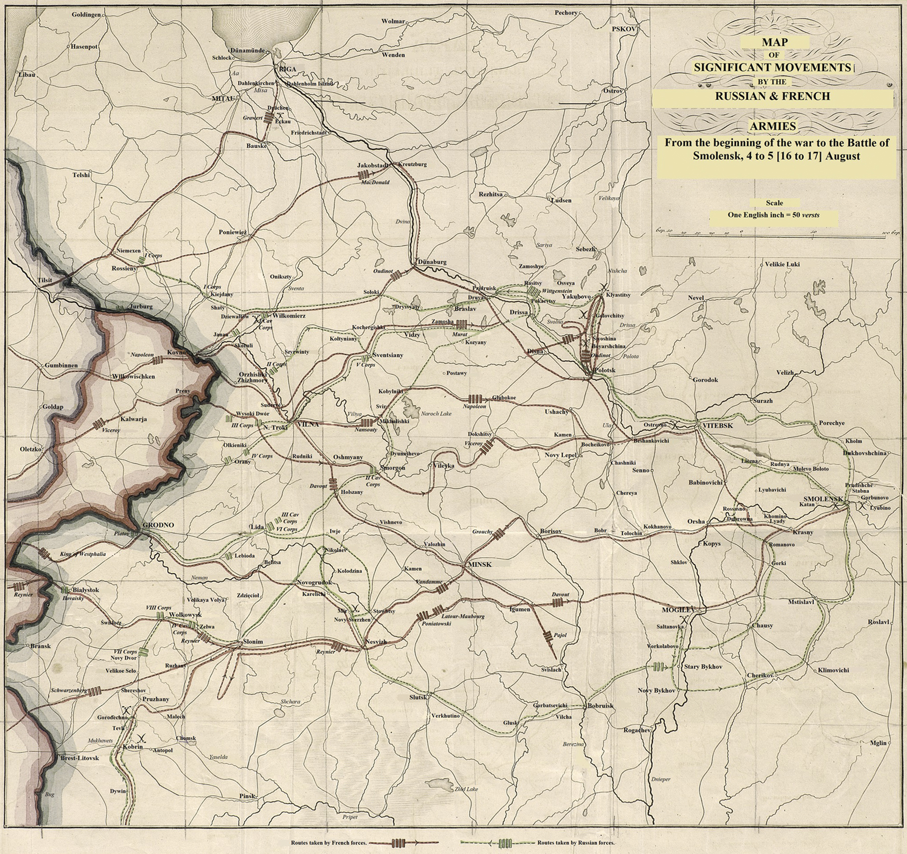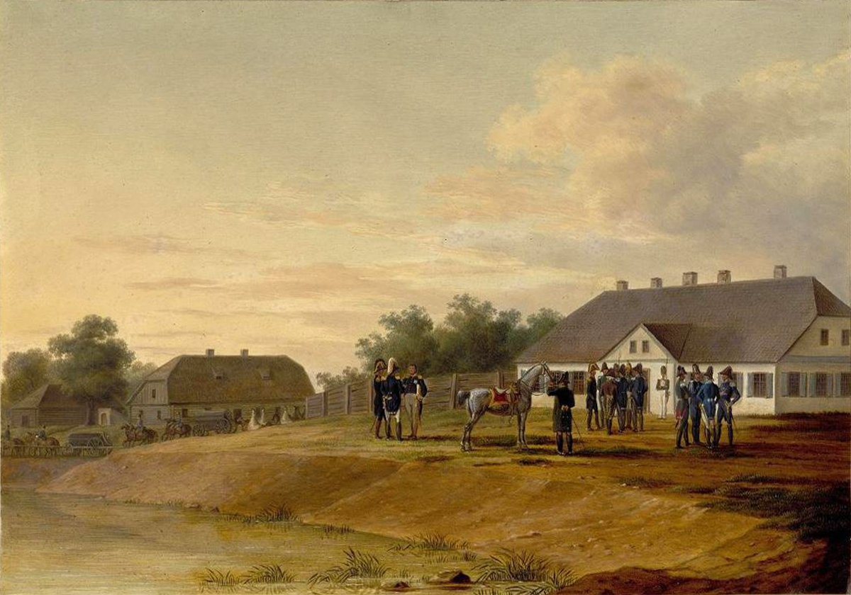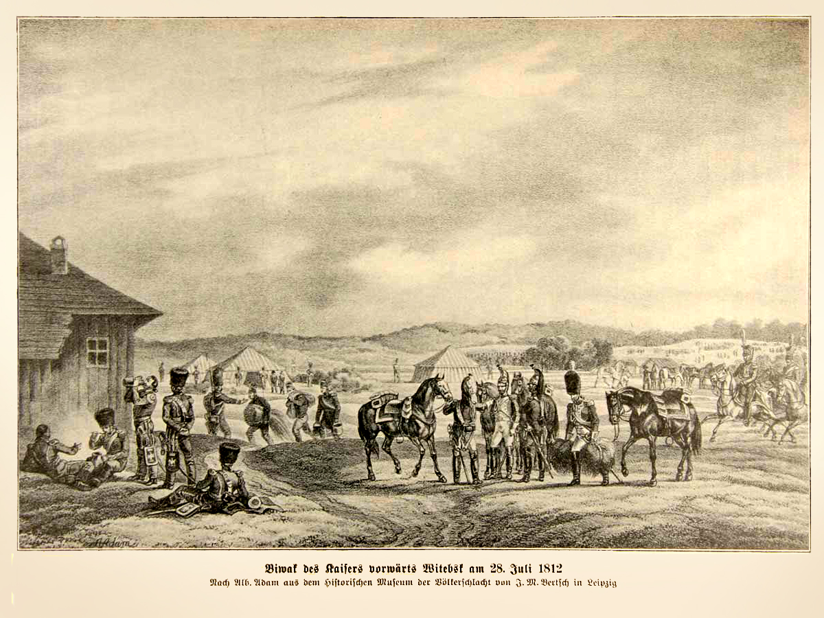 Kupfer-Stich von J.M. Darmet aus dem Atlas-Band "Histoire militaire de la campagne de Russie en 1812" von D.P. Boutourlin in der Sammlung der »Allrussischen staatlichen Bibliothek für ausländische Literatur. M.I. Rudomino« (Moskau, RUS).