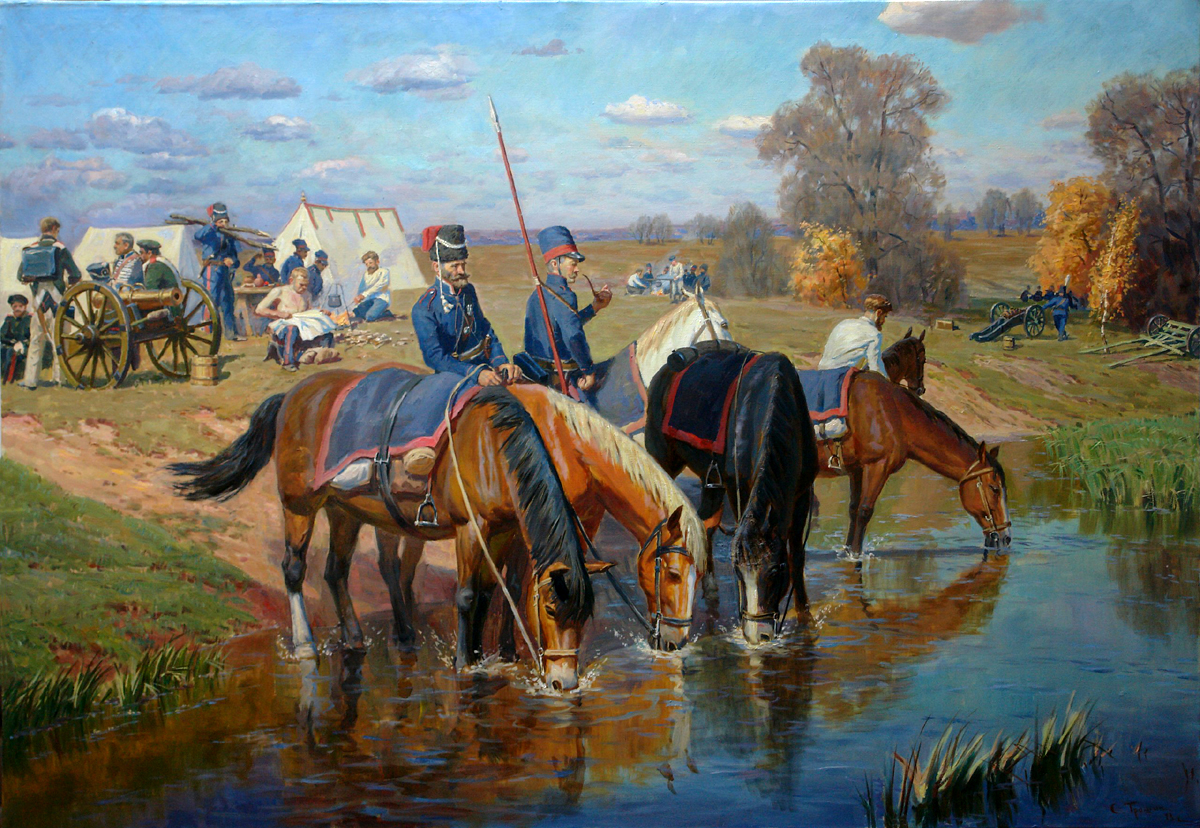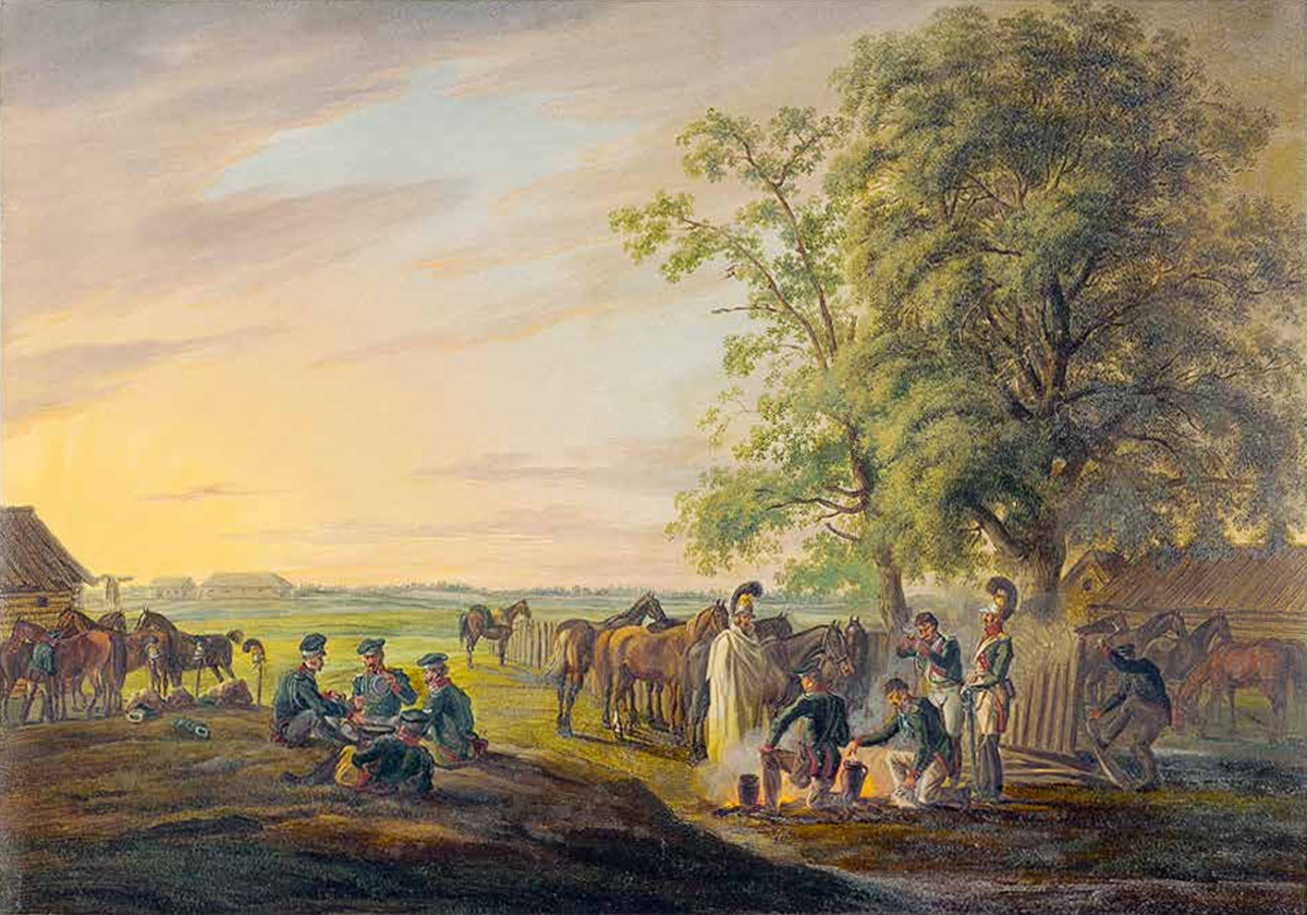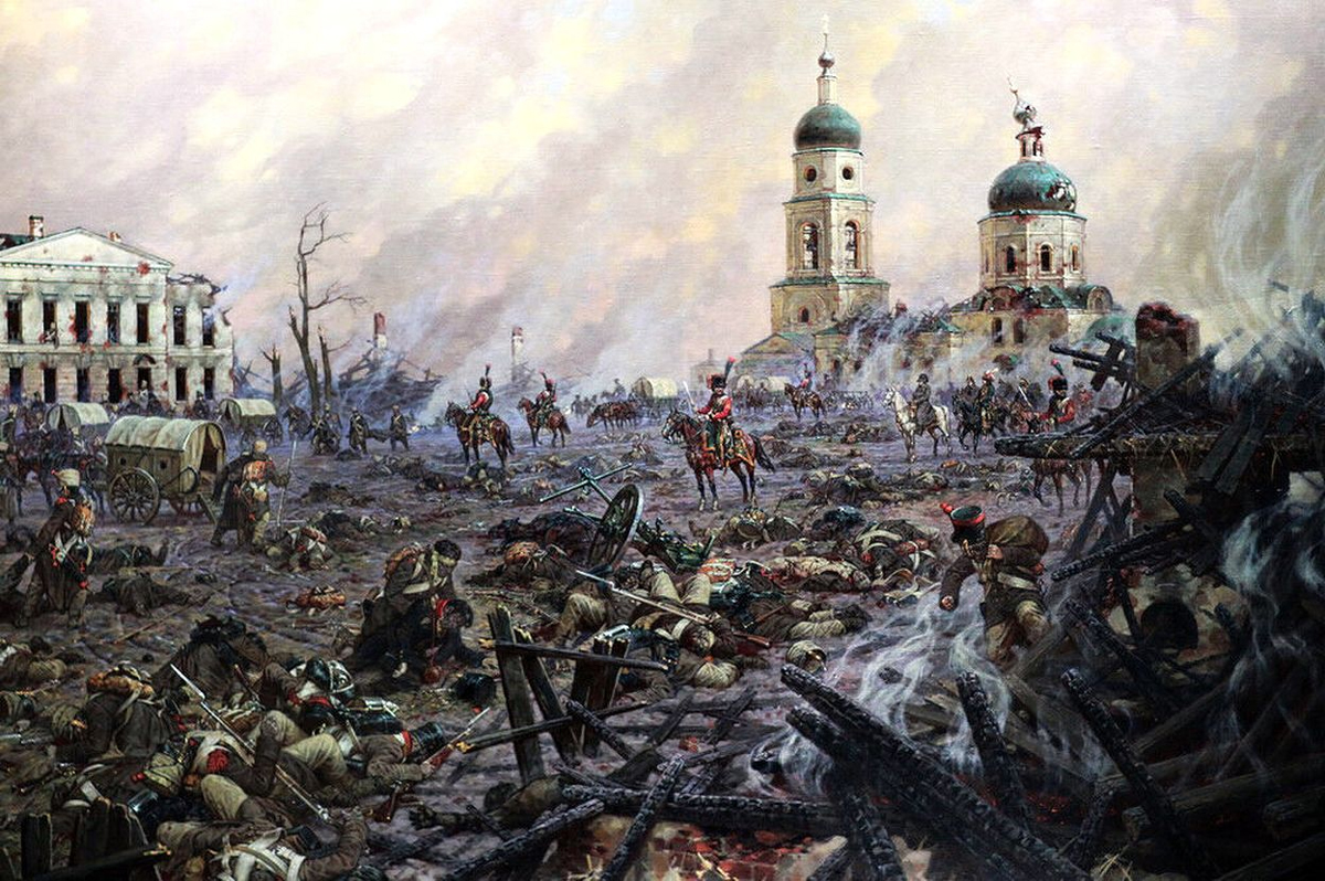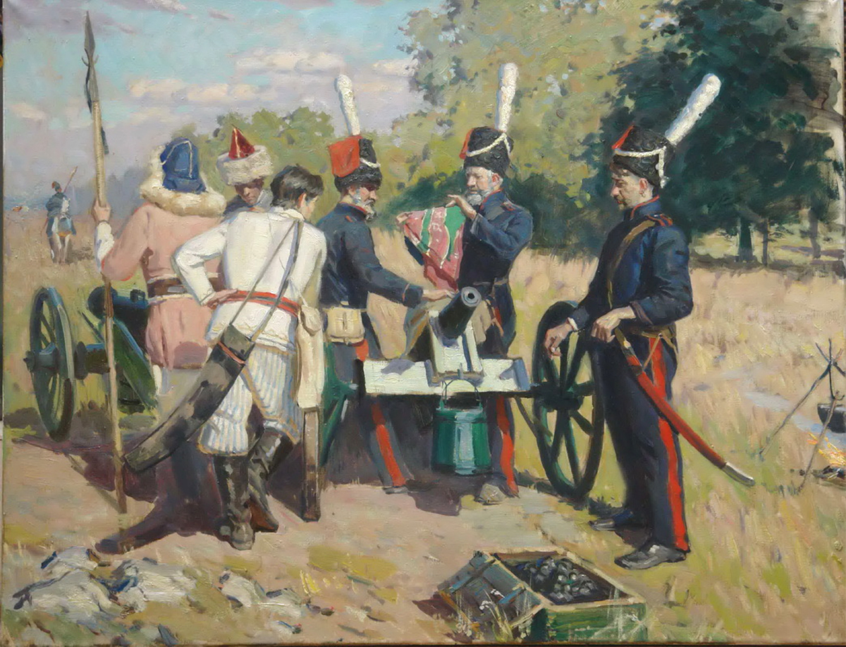 Gemälde von Oleg Awakimian in der Galerie »Der Vaterländische Krieg von 1812 in den Gemälden der Meister des Ateliers der Militärkünstler. M.B. Grekow« (Verteidigungsministerium der Russischen Föderation).