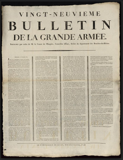 Das Neunundzwanzigste Bulletin der "Grande Armée" in der »Bibliothèque Méjanes« (Aix-en-Provence; FRA).