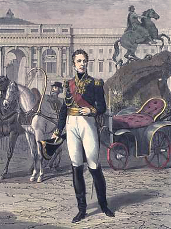 Zar Alexander I. von Russland (um 1817) Gemälde von K.A. Shewelkin nach dem ► Original von Francois Pascal Simon Gerard im► »Château de Malmaison« (Rueil-Malmaison, FRA). Bildquelle: ► »Hermitage« (St. Petersburg, RUS).