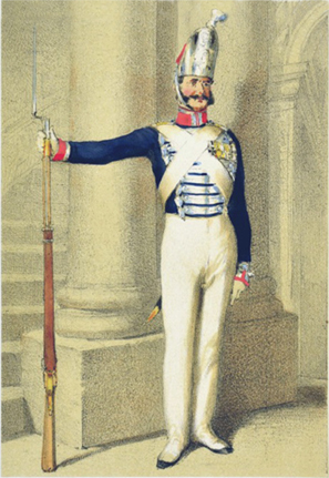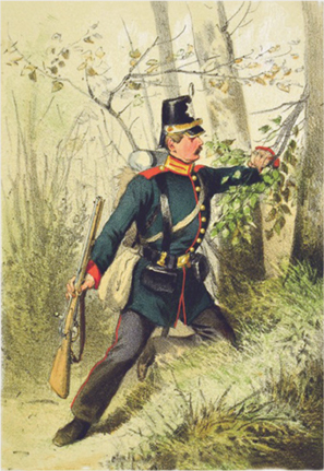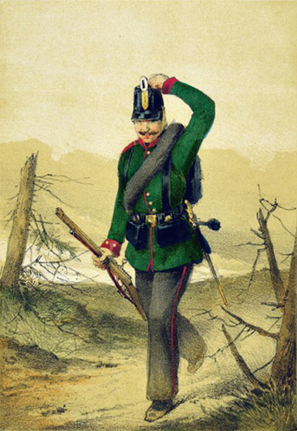Die im Jahr 1855 verfasste und 1856 befohlene Dienst-Vorschrift sah für die preussische Armee – nur 12 Jahre nach den umfänglichen Reformen zur Bewaffnung, Ausrüstung und Uniformierung von 1843 (siehe dazu