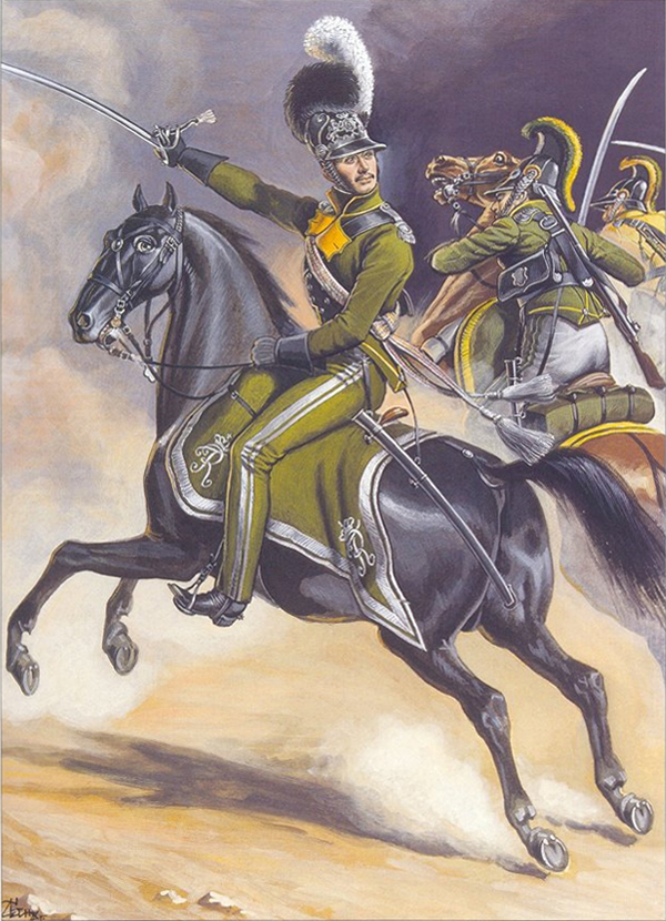 Chevaulégers. Offizier, Gefreiter und Trompeter. 1tes Regiment. 1812-1814. |